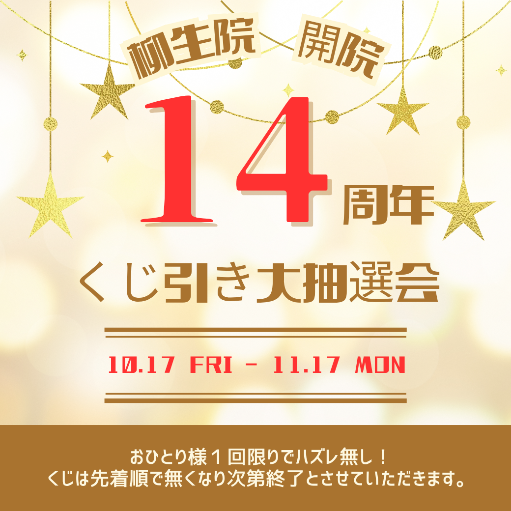 堀川整骨院 柳生院は10月17日で 開業14周年になります!!